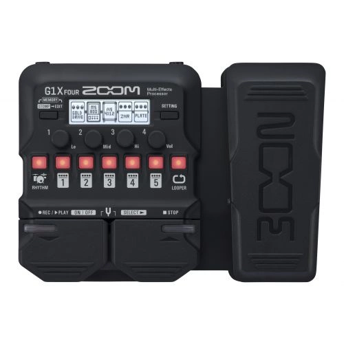 Zoom G1X Four to wysokiej jakości multiefekt gitarowy, który oferuje ponad 70 efektów i modeli wzmacniaczy. Posiada on również wbudowany looper i automat perkusyjny. Jeżeli mimo to uznamy, że brzmień jest zbyt mało, można pobrać kolejne za pomocą programu Guitar Lab.