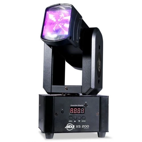 ADJ XS 200 to nowa rewolucjna ruchoma głowa. Posiada jedną głowę Axis, która ma ciągły obrót 360 stopni w obu kierunkach. Axis 200 wykorzystuje 2 x 10 Watt diody LED, które wyświetlają ostre promienie światła. Jego kompaktowe wymiary i niewielka waga sprawia, że jest idealnym rozwiązaniem dla mobilnych artystów, małych klubów i barów, lodowisk, skateparki, bowling CENTER lub dowolnej produkcji mobilnych.
