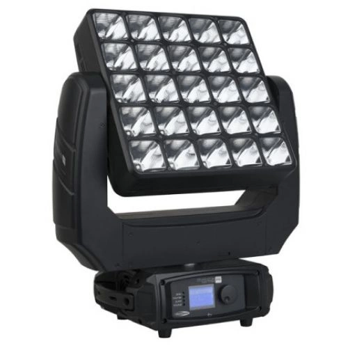 Showtec Phantom Matrix FX to panel 5x5 matrycy ruchomej z 25 elementami LED RGBW 4W i optyką 45 °.Obsługa za pomocą 10, 18 i 118 kanałów DMX dla początkujących i zaawansowanych użytkowników. We wszystkich trybach ustawione kolory, programy kolorowe, wbudowane animacje, gobo i znaki są wybierane przez DMX. Posiada technologię IFS, która pomaga użytkownikowi połączyć inne urządzenia IFS z podobnymi funkcjami w celu zsynchronizowania. To ułatwia programowanie podobnych kolorów, programów, lampek i prędkości. Użyj dołączonego ekranu dyfuzora, aby utworzyć lepszy widok animacji i używać go jako ruchomego panelu wizualnego.