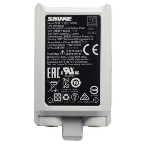 Akumulator litowo-jonowy Shure SB903 do użytku z cyfrowymi nadajnikami bezprzewodowymi SLX-D.