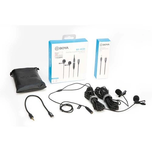BOYA BY-M2 to dookólny podwójny mikrofon krawatowy (lavalier), idealny przy nagrywaniu wideo. Przeznaczony do smartfonów z systemem iOS (iPhone). Mikrofon zapewnia pełny zasięg 360 stopni.