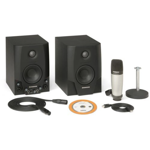 Nagrywaj, miksuj i masteruj. Dzięki Samson's Studio GT Pro masz wszystko, czego potrzebujesz, aby zmienić swój komputer w kompletne rozwiązanie do produkcji muzyki. Ten pakiet zawiera parę aktywnych monitorów studyjnych Studio GT z interfejsem audio USB oraz mikrofon pojemnościowy C01. Dołączone akcesoria to podstawa biurkowa, kabel USB, kabel mikrofonu XLR oraz wiele innych