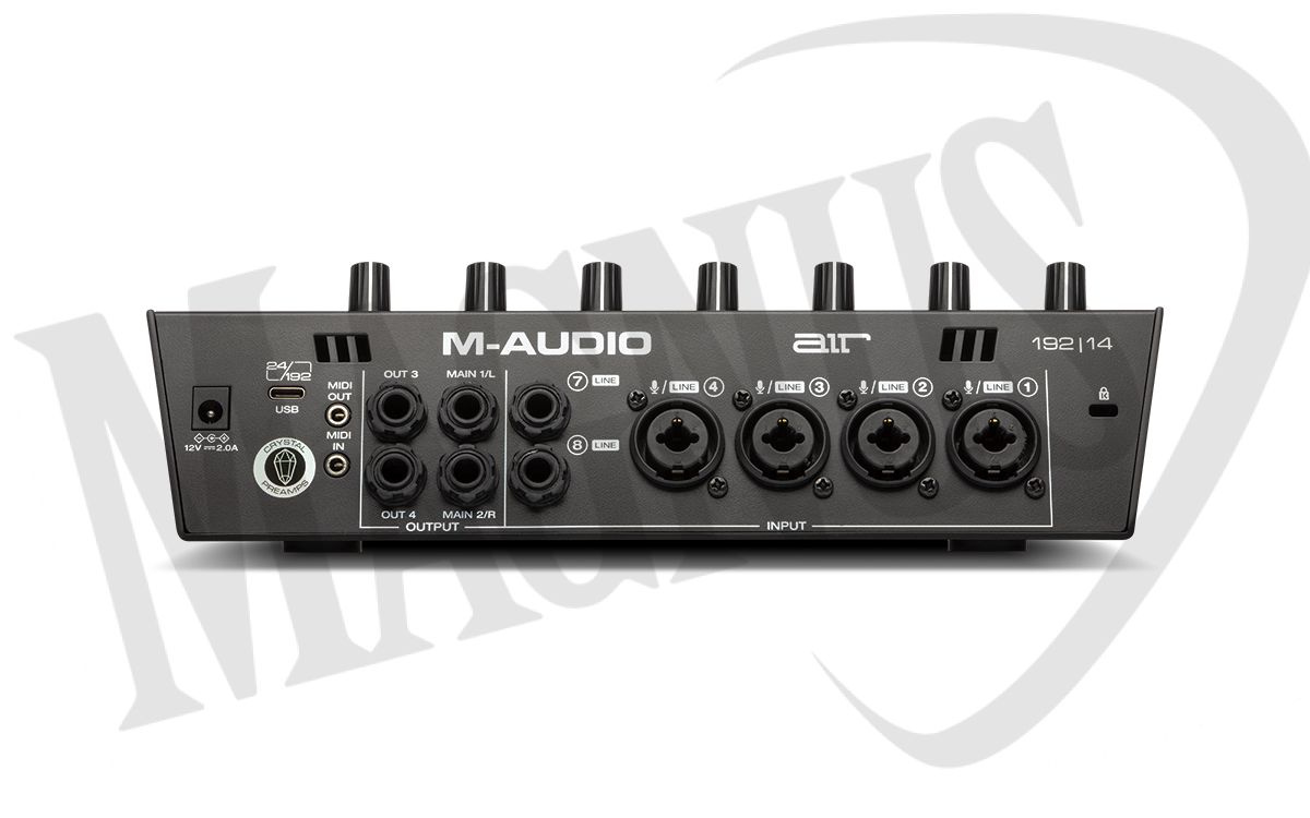 M-Audio AIR 192/14 to najlepszy wybór dla producentów muzycznych pracujących w domowym studio. Dzięki 8 wejściom, w tym czterem combo i dwóm instrumentalnym, idealnie nadaje się do nagrań perkusyjnych oraz wokalnych.