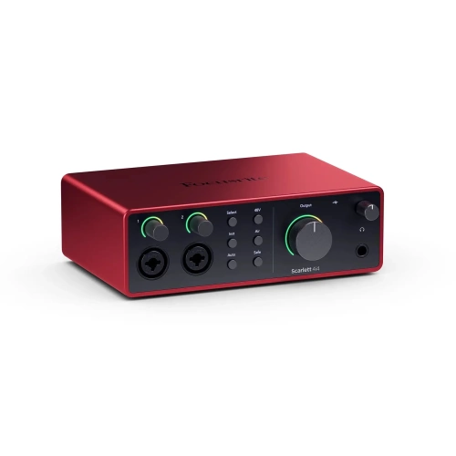 Focusrite Scarlett 4i4 4th Gen to interfejs audio zaprojektowany z myślą o profesjonalnych muzykach i producentach. Oferuje bogaty zestaw wejść i wyjść, co czyni go idealnym rozwiązaniem do nagrywania instrumentów, wokali oraz pracy z urządzeniami MIDI.