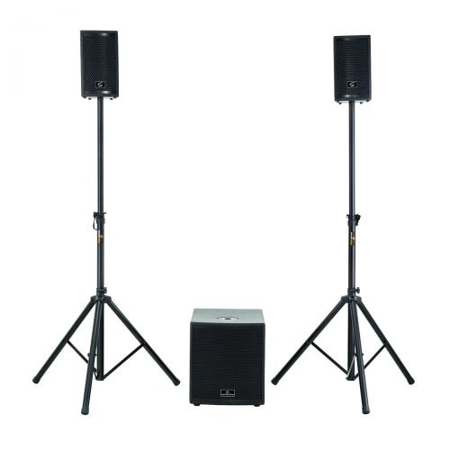 - Dwa pasywne głośniki z wzmocnioną obudową z płyt MDF, zawierają 6,5" woofery i 1" drivery