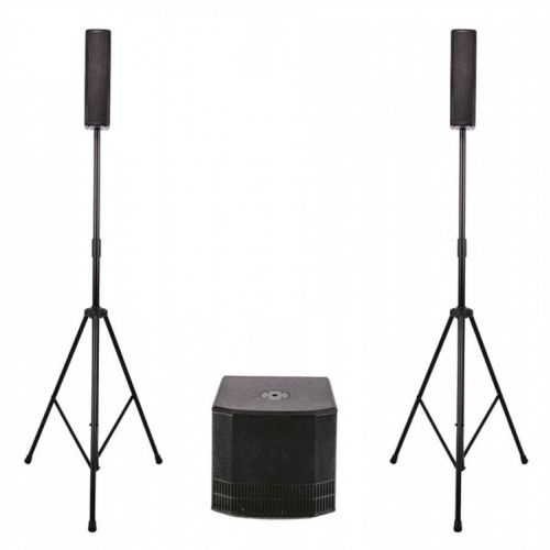 Wysokiej jakości komponenty, takie jak 12-calowy subbas z bass-reflex i pełnozakresowe kolumny z 3-calowymi głośnikami, zapewniają czysty i dynamiczny dźwięk. Funkcja Bluetooth® umożliwia bezprzewodowe odtwarzanie muzyki, co zwiększa komfort użytkowania.