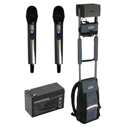 Mały, zasilany akumulatorem przenośny system nagłośnieniowy z zewnętrznym odbiornikiem mikrofonu bezprzewodowego - LDM D216, charakteryzujący się naturalnym, czytelnym brzmieniem dzięki zastosowaniu zestawu głośnikowego w skład którego wchodzą 4 głośniki neodymowe bardzo wysokiej jakości. Wbudowany odtwarzacz Mp3 z funkcją Bluetooth.