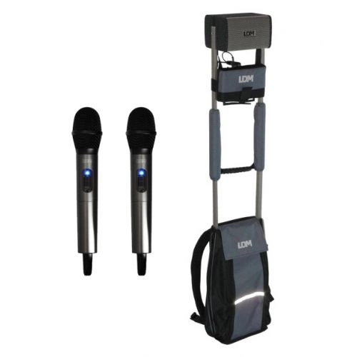 Mały, zasilany akumulatorem przenośny system nagłośnieniowy z zewnętrznym odbiornikiem mikrofonu bezprzewodowego - LDM D216, charakteryzujący się naturalnym, czytelnym brzmieniem dzięki zastosowaniu zestawu głośnikowego w skład którego wchodzą 4 głośniki neodymowe bardzo wysokiej jakości. Wbudowany odtwarzacz Mp3 z funkcją Bluetooth.