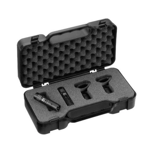 Optymalny do nagrywania zestawów perkusyjnych lub pojedynczych instrumentów. Niewielkie rozmiary, włącznik filtru dolnozaporowego, włączane tłumienie (-10dB), zasilanie fantomowe 48V. W komplecie uchwyt z gwintem 16mm ( 5/8 ") do statywu i przejściówka 9mm ( 3/8 "). Zestaw dostarczany w praktycznej walizce z tworzywa sztucznego.