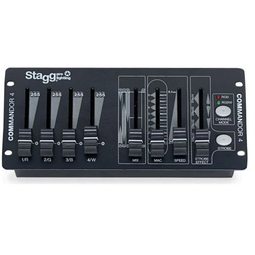 1: 4, odpowiednio dla kanału suwaki : czerwony, zielony, niebieski i biały (lub amber) do Wyjście sygnału DMX512