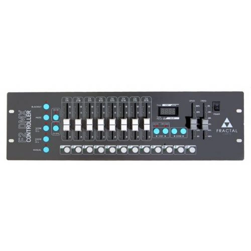 Fractal Lights F2 pozwala na zapisanie do 100 scen w pamieci urządzenia i ułożenia ich w 12 różnych programów. Kontroluje do 192 kanałów DMX, czyli aż do dwunastu 16-kanałowych urządzeń. Istnieje możliwość dostosowania prędkości i czasu przejścia odtwarzanych scen, jak i również wyzwalanie ich w rytm muzyki. Co więcej, cała pamięć zaprogramowanego sterowanika F2 może zostać skopiowana na miniaturowy panel odtwarzania F3, również dostępny w naszej ofercie.