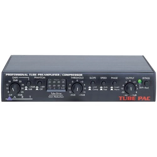 Maksymalne wzmocnienie :70dB (XLR – XLR), 67dB (1/4” – 1/4”)Przedwzmacniacz posiada dwie lampy 12AX7A, wyposażony także został w 1 wejście/wyjście symetryczne XLR i 1 wejście/wyjście niesymetryczne. Wejście niesymetryczne może pełnić funkcję wejścia instrumentalnego. Przedwzmacniacz posiada przełącznik zakresu wzmocnienia oraz zasilanie Plantom. Kompresor wyposażony został w regulację progu działania, przełącznik charakterystyki pracy kompresora (kompresor/limiter), przełącznik czasów działania kompresora oraz przełącznik fazy. Dodatkowo na panelu przednim znajduje się diodowy miernik wysterowania lamp oraz redukcji wzmocnienia, a także regulacja poziomu wyjściowego.