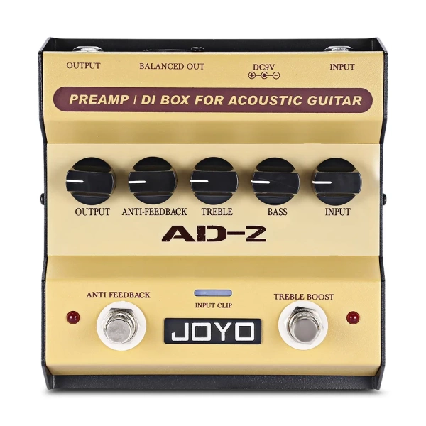 Joyo AD-2 to przedwzmacniacz i D.I. Box w jednym przeznaczony do gitar akustycznych. Posiada on wbudowany, dwu-pasmowy equalizer co daje możliwość dostrojenia niskich i wysokich częstotliwości oraz konstrukcję zapobiegającą sprzężeniu zwrotnemu - niezwykle przydatną na scenie i wiele innych funkcji...
