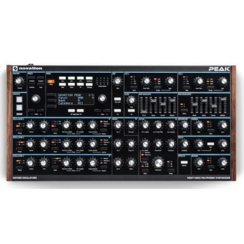 Novation Peak to zaawansowany, ośmiogłosowy syntezator desktopowy, idealny dla muzyków i producentów dźwięku, którzy pragną uzyskać wyjątkowe brzmienia analogowe i cyfrowe.