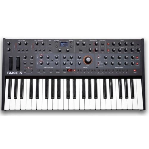 W pełni funkcjonalny syntezator subtraktywny Take 5 ma dwa VCO i sub-oscylatory na głos, klasyczny 4-biegunowy, rezonansowy filtr analogowy z Prophet-5 Rev 4, 44 pełnowymiarowe klawisze i wysokiej jakości klawiaturę Fatar. Sprytna funkcja podziału klawiatury na dwie oddzielne strefy daje graczom dużo większe możliwości niż wiele innych kompaktowych syntezatorów. Podwójne efekty cyfrowe i dedykowane przesterowanie, bezstopniowe kształtowanie fali oraz dostęp do analogowego FM na panelu przednim pozwalają Take 5 pokryć szeroki zakres dźwięków, od brzmień vintage po współczesne.