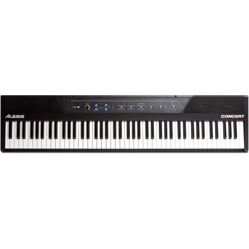 Alesis Concert to w pełni funkcjonalne pianino cyfrowe z 88 pełnowymiarowymi, półważonymi klawiszami z regulowaną reakcją na dotyk.
