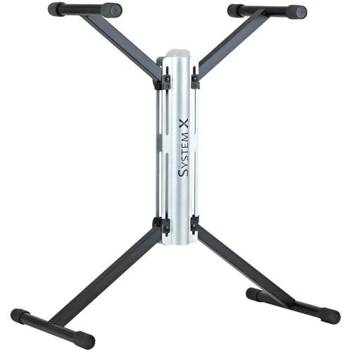 Nowość w ofercie. Firma Hamilton jako pierwsza wprowadziła na rynek muzyczny statyw krzyżakowy, który bez względu na ustawioną wysokość zachowuje szeroki rozstaw ramion na których stawia się instrument. Innowacja ta sprawiła, że bez względu czy stawiasz keyboard wysoko, czy siadasz przy pianinie to rozstaw ramion zawsze odpowiednio zabezpieczy Twój instrument. Statyw keyboardowy systemu X KB7700K zapewnia mobilność i prostotę użytkowania. Specjalna konstrukcja rozwiązuje znany z przeszłości problem, typowy dla starszej produkcji „X-ów”, kiedy zdarzało się, że w przypadku klawiatury o niestandardowym rozmiarze problematycznym było ustawienie rozstawu zgodnie z wymaganą wysokością statywu (bardzo szerokie klawiatury musiały być ustawiane nisko, a wąskie powodowały, że przez mały rozstaw statyw był niestabilny). Statyw KB7700K utrzymuje wymagany rozstaw na każdej wysokości. Krótko podsumowując, to właśnie statyw, którego szukałeś, choć jeszcze może o tym nie wiesz. Opcjonalnie można dokupić dostawkę na drugi klawisz Hamilton KB7720K.