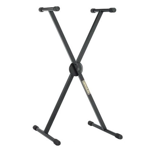 Profesjonalny statyw do instrumentów klawiszowych. Rama pojedyncza 1" w kształcie litery X. Opatentowany bezśrubowy system składania EZ-LOK. Wysokości 53, 68, 81, 91, 99cm, waga 3,7kg, obciążenie do 80kg, wymiary transpotrowe 103x49cm