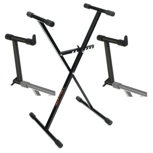 Standardowy statywy keyboardowe przeznaczone pod lekkie instrumenty klawiszowe, polecane dla początkujących klawiszowców. Statyw posiada siedmio stopniową regulację wysokości na grzebieniu.