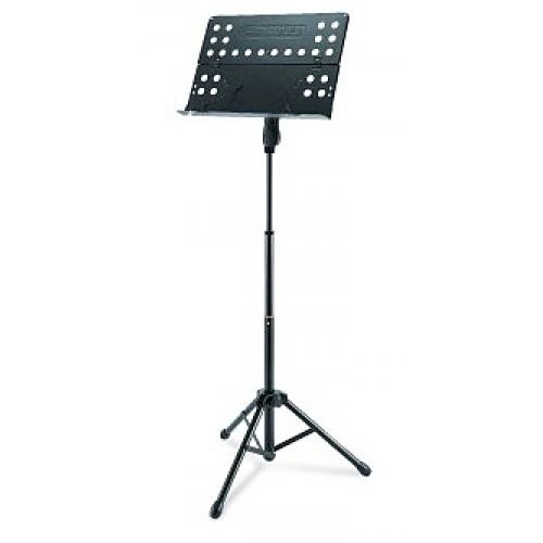 Pulpit na nuty na potrójnej podstawie. System regulacji wysokości EZ ANGLE ROLLER, QUICK-N-EZ RETEINER: 610 - 1150 mm. Perforowany board (desk) o wymiarach: 480 x 345 mm. Waga: 3,2 kg.