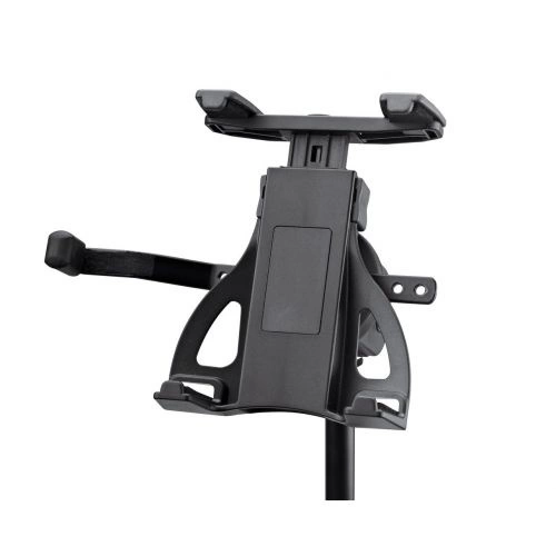 Uniwersalny uchwyt na tablet do statywów mikrofonowych. Uchwyt można szybko i łatwo przymocować do dowolnego statywu mikrofonowego z gwintem wewnętrznym 3/8". Unikalny mechanizm napinający o szerokości mocowania od 120 do 220 mm oznacza, że uchwyt nadaje się do bezpiecznego trzymania wszystkich standardowych modeli tabletów, takich jak iPad, iPad Air, iPad mini, Amazon Kindle, Amazon Fire, Samsung Galaxy Tab, Google Nexus, Asus Transformer lub Microsoft Surface. Uchwyt jest odpowiedni dla tabletów posiadającychz ochronne etui.