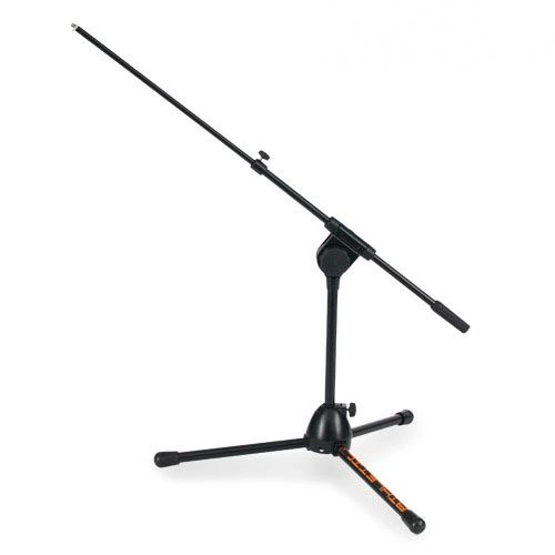 Niski statyw do nagłośnienia z teleskopowym ramieniem z przegubem i podstawą z tworzywa sztucznego. Wersja DELUXE.
