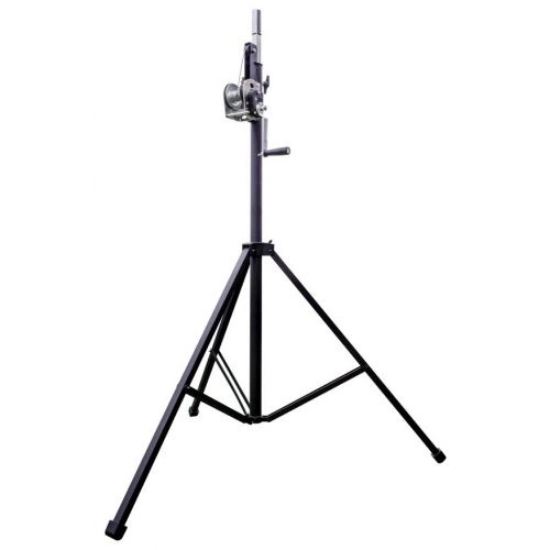Bardzo wytrzymały statyw typu wind up wykonany ze wzmocnionej stali o maksymalnym obciążeniu do 80kg. Dzięki zastosowaniu blokady zapadkowej w mechanizmie, zamocowany sprzęt jest zabezpieczony przed mimowolnym i niekontrolowanym opuszczeniem w dół i uszkodzeniem. Jest doskonałym rozwiązaniem dla mobilnych DJ jak i muzyków.