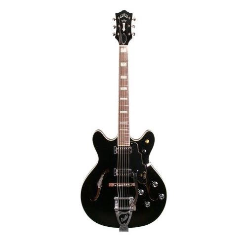 LB-1 zwany ,,Little Bucker’’ to niepowtarzalny przetwornik, tak jak cała gitara Starfire V. Gryf skomponowany z trzech kawałków mahoń-klon-mahoń posiada 22 progi. Gitarę oprócz typowych potencjometrów wyposażono w Master Volume i Guild Vibrato Tailpiece.