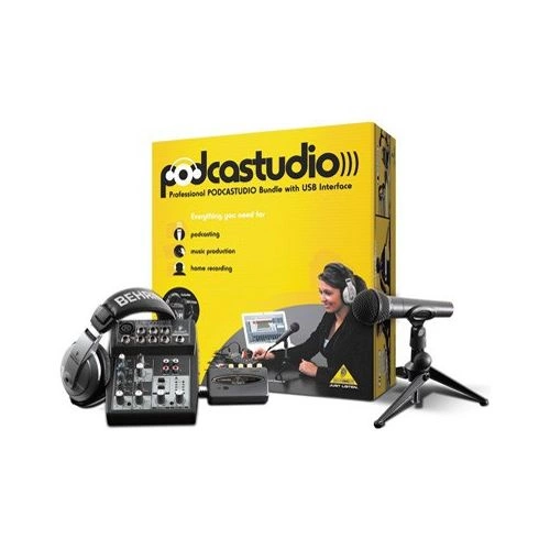 BEHRINGER PODCASTUDIO USB - Kompletny zestaw domowego studia nagraniowego z interfejsem USB. Wszystko, czego potrzeba do tworzenia profesjonalnych podcastów, produkcji muzycznej i zapisu cyfrowego w domu.