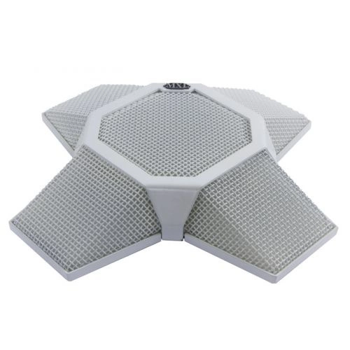 12 wewnętrznych kapsuł mikrofonowych podzielonych na 4 ćwiartki koła zapewnia 360 stopni idealnej zrozumiałości mowy w promieniu 7,5 m, bez konieczności korzystania z dodatkowego sprzętu.