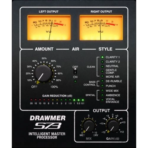 Drawmer S73 charakteryzuje się ulepszoną konstrukcją kompresora wielopasmowego, dostrojonego w celu poprawy Twojego miksu przy minimum regulacji. S73 wykonuje większość pracy za Ciebie, podejmując decyzje, które musiałby podjąć realizator masteringu. Po prostu użyj parametru Style do przełączania się pomiędzy gotowymi technikami masteringowymi, aby szybko znaleźć brzmienie, które najlepiej pasuje do Twojego miksu.