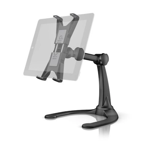Uniwersalny stojak dla tabletów o przekątnej od 7" do 12.1" [np. iPad Air2, iPad mini 3], płynna regulacja szerokości uchwytu i kąta nachylenia, w zestawie podstawka oraz uchwytu umożliwiający przykręcenie stojaka na krawędzi biurka