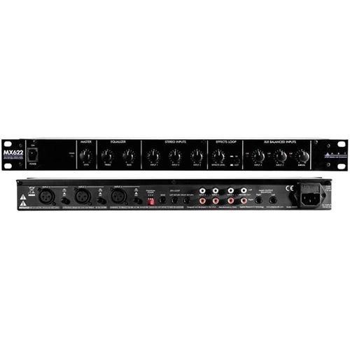 MX622 to elastyczny mikser, łączący trzy wejścia symetryczne liniowo - mikrofonowe, i trzy wejścia stereofoniczne w jeden stereofoniczny miks. Podstawowe cechy to zewnętrzna pętla efektów (wysyłka mono, powrót stereo), niezależne wyjście Record, stereofoniczne wyjście symetryczne TRS 1/4" i dwuzakresowy korektor. Wewnętrzny zasilacz i format rackowy 1U, pozwala na łatwą instalację i niezawodną, długą pracę.