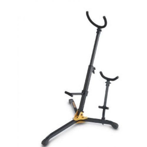 Statyw na saksofon barytonowy i altowy/tenorowy na trójdrożnej podstawie. Regulowana wysokość. Wysokość statywu od 64,5cm do 87,5cm. Waga 2,1kg.