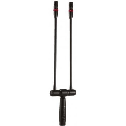 Podwójne mikrofony elektretowe na gęsiej szyi, ze świecącym na czerwono pierścieniem