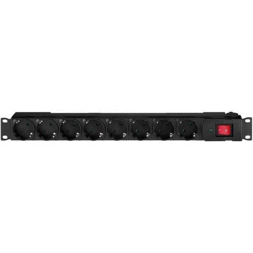 Wysokiej jakości listwa zasilająca rack z 8 uziemionymi gniazdkami, idealna do profesjonalnych zastosowań w studio i biurze.