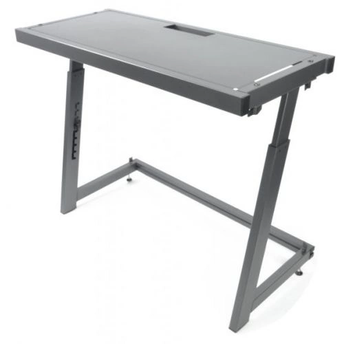 Wysokiej jakości, profesjonalny i stabilny statyw dla DJ’a o regulowanej wysokości z pełnym blatem.