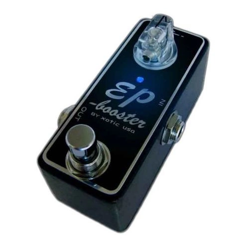 EP Booster to najbardziej niepozorna kostka Xotic. Jest to malutki (choć bardzo ciężki) volume booster (do 20dB). Brzmienie to kwintesencja naturalności - pełne pasmo, doskonała dynamika (zasilanie do 18V). Możliwość wyboru podbijanego pasma dzięki wewnętrznym przełącznikom. Ten malec (niewiele większy od baterii 9V) potrafi cudownie dopalić każdy wzmacniacz.