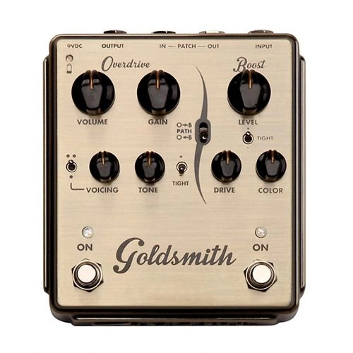 Goldsmith jest w 100% analogowy. Dwa w jednym, Overdrive i Boost. Sekcja Overdrive szczyci się niezwykle czułą kontrolą tonów wraz z Gain oraz pokrętłami głośności. Dostarcza szeroką gamę nasyconych brzmeń. Voicing pozwala na precyzyjne rzeźbienie średnich częstotliwości.