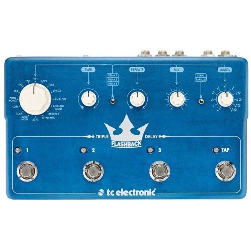 Flashback Triple Delay można zsynchronizować do MIDI dokładnie ustalając czas powtórek, a także rozszerzyć bazę brzmień delaya. Urządzenie może pracować również w trybie stereo, a także umożliwia współpracę z pedałem ekspresji, za pomocą którego możesz dowolnie regulować parametry delaya. Standardowo efekty TC Electronic posiadają True Bypass (tu również z możliwością buforowania).