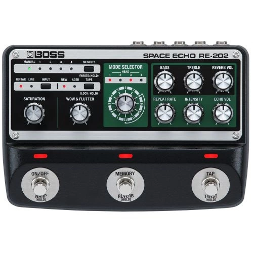 Podczas gdy poprzednie projekty BOSS uchwyciły prawdziwy smak brzmienia i podstawowe cechy Space Echo, nowe postępy pozwoliły nam zajść znacznie głębiej niż kiedykolwiek wcześniej. Dzięki RE-202 nasi inżynierowie w pełni odtworzyli wszystkie złożone, nieliniowe zachowania, które składają się na nieśmiertelny charakter RE-201. Wszystko, co ma wpływ na dźwięk, zostało dokładnie zbadane i odtworzone za pomocą zupełnie nowych algorytmów, w tym ścieżki taśmy, mechanizm nagrywania/odtwarzania, zmiany silnika, barwy przedwzmacniacza, wiek taśmy, charakter pogłosu sprężynowego i więcej.