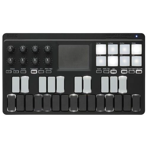 Korg nanoKEY Studio to mobilny kontroler MIDI, który umożliwia tworzenie muzyki w dowolnym miejscu dzięki bezprzewodowej łączności i kompaktowym rozmiarom.