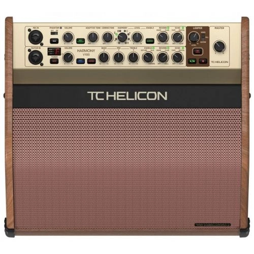TC-Helicon Harmony V100 100-watowy 2-kanałowy wzmacniacz akustyczny z efektami wokalowymi, looper, głośnikiem koncentrycznym Tannoy, dodatkowym głośnikiem wysokotonowym i 4-przyciskowym przełącznikiem nożnym