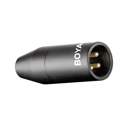 BOYA 35C-XLR to adapter z wejścia 3,5 mm mini jack (TRS) do wyjścia XLR męski. Pozwala na podłączenie mikrofonu z wyjściem mini jack do profesjonalnego miksera, kamery lub innego urządzenia z wejściem XLR.