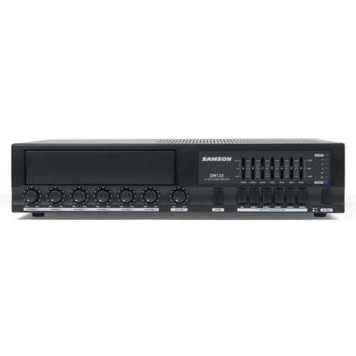 Aby kontrolować ogólną odpowiedź tonalną systemu dźwiękowego, seria ZM wykorzystuje siedmiopasmowy korektor graficzny. Kontrola poziomu głównego i pięć mierników poziomu segmentu pozwala ustawić czysty sygnał przy właściwej głośności. Aby zwiększyć elastyczność, możesz dodać opcjonalny moduł dźwiękowy Samson TCM-3 z tunerem FM i odtwarzaczem CD, który może odtwarzać zarówno standardowe płyty CD, jak i CD z plikami MP3. ZM125 można postawić na stole lub zamontować w standardowym 19-calowym stojaku na sprzęt, używając zawiera uszy do montażu w stojaku.