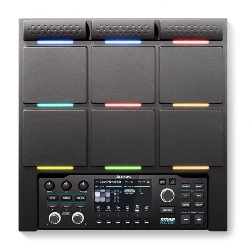 Alesis zaprojektował Strike MultiPad wokół wymagań perkusisty, aby móc samplować, edytować, zapętlać i wykonywać w sposób płynny. W tym celu Strike MultiPad oferuje aż 7000 zainstalowanych dźwięków, 32 GB pamięci i możliwość nagrywania próbek z dowolnego źródła (smartfona, mikrofonu, z Internetu, przez USB, z praktycznie dowolnego innego urządzenia audio). Dziewięć dynamicznych padów ma konfigurowalne podświetlenie RGB. Strike MultiPad wyposażony został w ekskluzywny ekran kolorowy 4,3 cala, który pozwala na sprawdzenie statusu systemu lub edycję dowolnych parametrów.