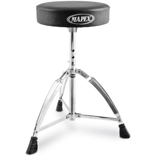 Krzesło z okrągłym siedziskiem i podwójnymi nogami. Zmiana wysokości regulowana "motylkiem" i klamrą zabezpieczającą.