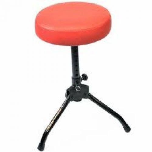 Podwyższony stołek dla perkusisty o regulowanej wysokości z grubym, miękkim siedziskiem wykonanym ze skóry ekologicznej.