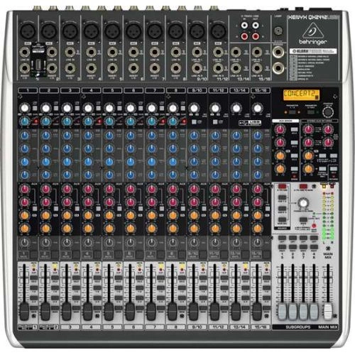 Kanałów mikrofonowych z przedwzmacniaczami XENYX i phantomem jest dokładnie 10, reszta kanałów dostępna jest dla stereofonicznych źródeł. Na każdym kanale znajdziemy filtr lowcut, 3-pasmowe EQ(przestrajany środek) i 4 dostępne wysyłki. Na 8 kanałach są także kompresory sterowane jednym pokrętłem. Do dyspozycji mamy także 4 podgrupy. Na pierwszych dwóch kanałach ostatnia nowość Behringera czyli porty USB np. na ten mikrofon bezprzewodowy. Mikser wyposażono w 60mm tłumiki. Na pokładzie jest także stereofoniczny interfejs USB dla tych którzy lubią od czasu do czasu coś nagrać. Więcej informacji na stronie producenta.