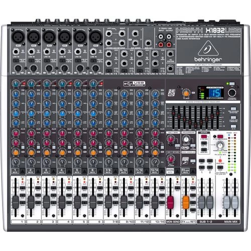 - 18-kanałowy mikser z 3/2 podgrupami z przedwzmacniaczami mikrofonowymi Xenyx i kompresorami, klasyczną "brytyjską" korekcją, 24-bitowym procesorem efektów oraz interfejsem audio USB